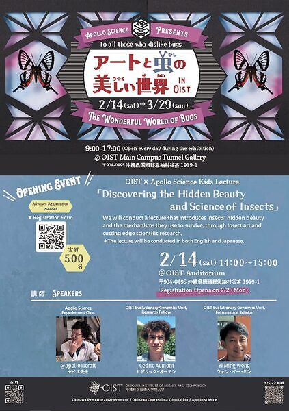 By combining insect art with cutting-edge research from OIST scientists, participants will discover how insects survive, communicate, and evolve — all while appreciating their unique shapes, colors, and structures.