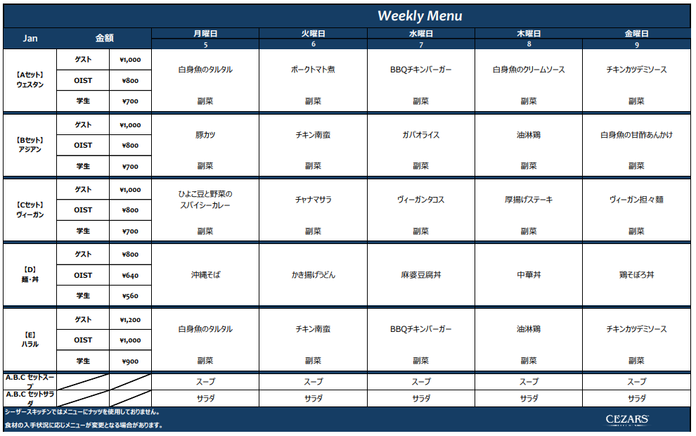 Menu will be updated on a weekly basis to avoid change due to supply.