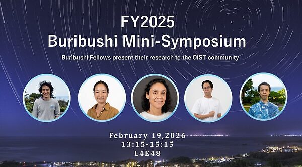 ぶりぶし(群星)フェローシップは、世界各国から優秀な若手研究者をOISTに招へいし、独立した研究活動を支援するとともに、国際的な学術交流の促進を目的としたフェローシップ制度です。本ミニシンポジウムでは、ぶりぶし(群星)フェローが自身の研究内容を分かりやすく紹介し、参加者とのディスカッションや交流を通じて、フェローによる多様で質の高い研究の可視化、研究ユニットや分野を越えた知的交流の促進、そして フェローと学内コミュニティとのつながり強化を目指します。