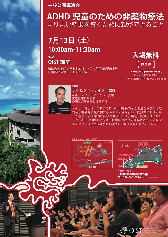 (*)教師に加えて、その他の学校関係者や日常的にADHDの子供達に関わっている専門家の方々も本講演にお申し込み下さい。