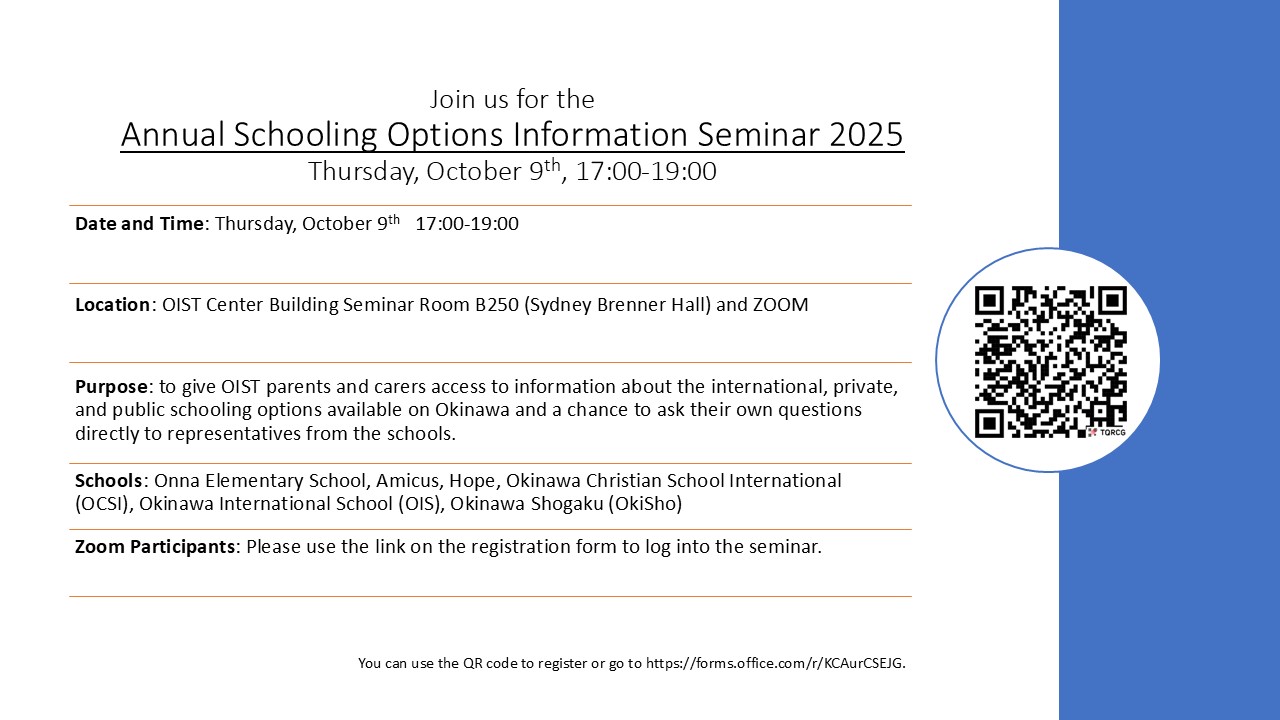 If you have any questions, please feel free to contact Educational Support Services ご質問がございましたら、教育サポートサポートサービスまでお気軽にお問い合わせください: educational_support@oist.jp