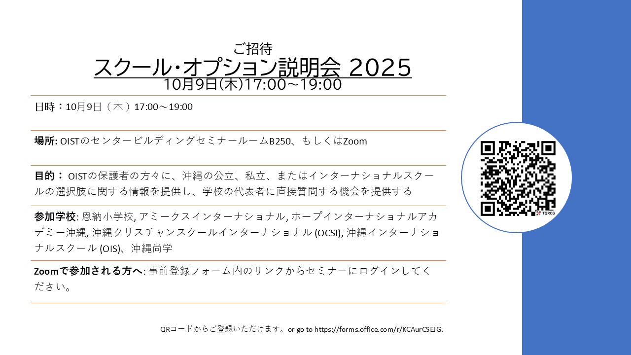2025年10月9日17:00~19:00開催の2025年度学校オプションセミナーへぜひご参加いただきたく、ご案内いたします。