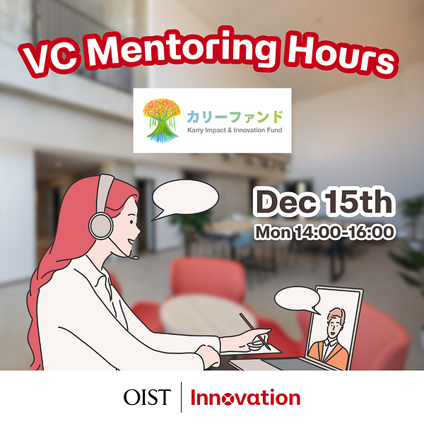 In collaboration with leading venture capital firms, OIST Innovation offers startups and entrepreneurial researchers or students the opportunity to connect directly with venture capitalists for one-on-one mentoring and discussion.
