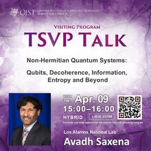 TSVP Talk: "Non-Hermitian Quantum Systems: Qubits, Decoherence, Information, Entropy and Beyond" by Avadh Saxena