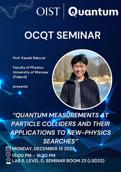 The OIST Center for Quantum Technologies (OCQT) is pleased to invite you to the next installment of the OCQT Seminar Series. This time, we are excited to host Prof. Kazuki Sakurai from the Faculty of Physics, University of Warsaw (Poland), who will deliver a talk entitled: