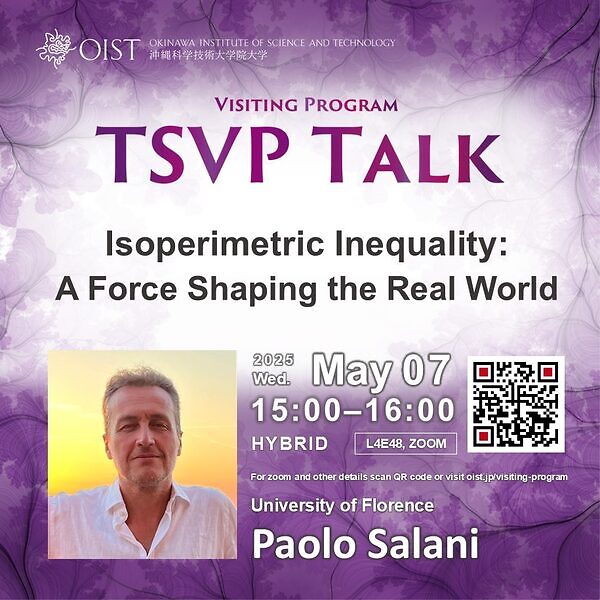 ※ Please note that this event may be recorded and the videos uploaded. In addition, photos may be taken during the event. These are intended for publication online (the OIST website, social media, etc.)※