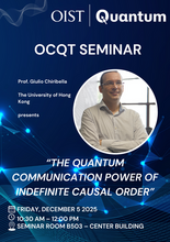 The OIST Center for Quantum Technologies (OCQT) is pleased to invite you to the next installment of the OCQT Seminar Series. This time, we are excited to host Prof. Giulio Chiribella from the University of Hong Kong, who will deliver a talk entitled:
