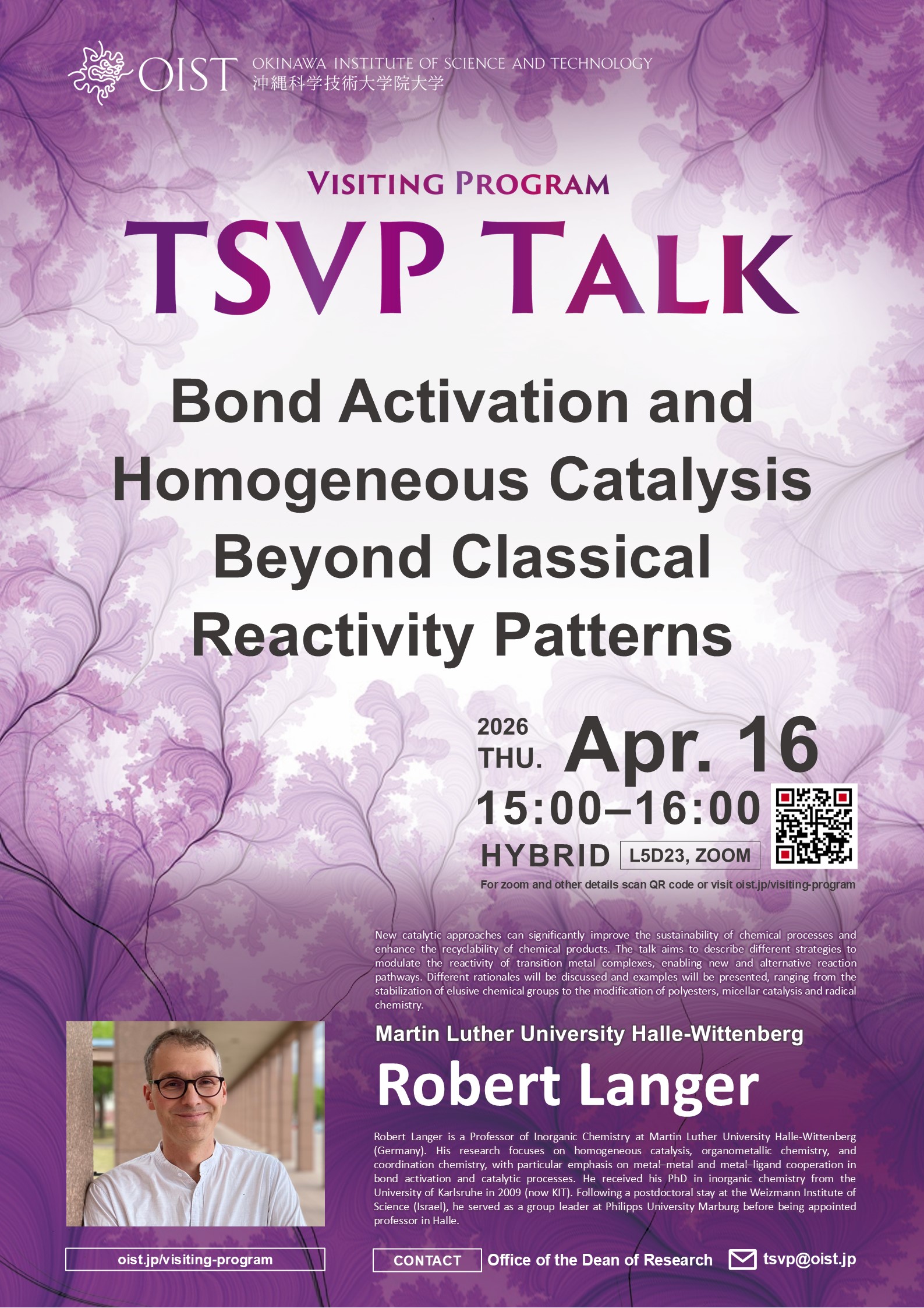 TSVP Talk: "Bond Activation and Homogeneous Catalysis Beyond Classical Reactivity Patterns" by Robert Langer